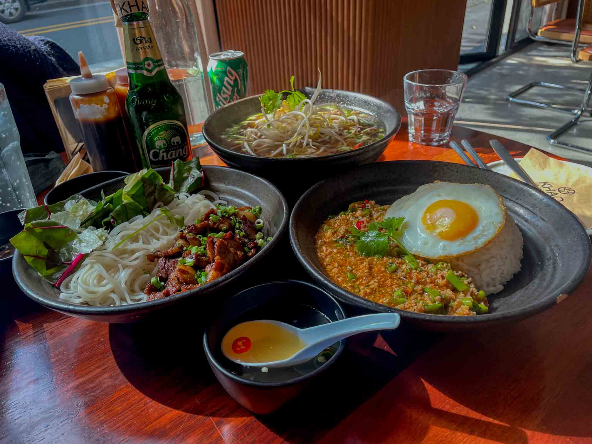 소고기 쌀국수는 고추가 들어가 있어서 살짝 끝 맛이 칼칼한 게 추운 겨울에 먹으면 속이 따뜻해져서 좋았고, 분짜는 채소도 신선하고 고기도 숯불향이 나서 같이 먹었을 때 밸런스도 좋고 식감도 좋습니다. 특히 소스가 새콤한 게 저에게는 완전 취향인 음식입니다. 파카파오무삽은 좀 더 국물이 없이 볶아진 상태로 나오면 현지 맛과 가까웠을 텐데 그보다는 국물이 조금 더 있어서 돼지고기 덮밥처럼 나왔습니다. 국물이 많다고 해서 맛없거나 하진 않았지만 좀 더 오리지널가 가까웠던 바람이 컸던지라 아쉬웠습니다.