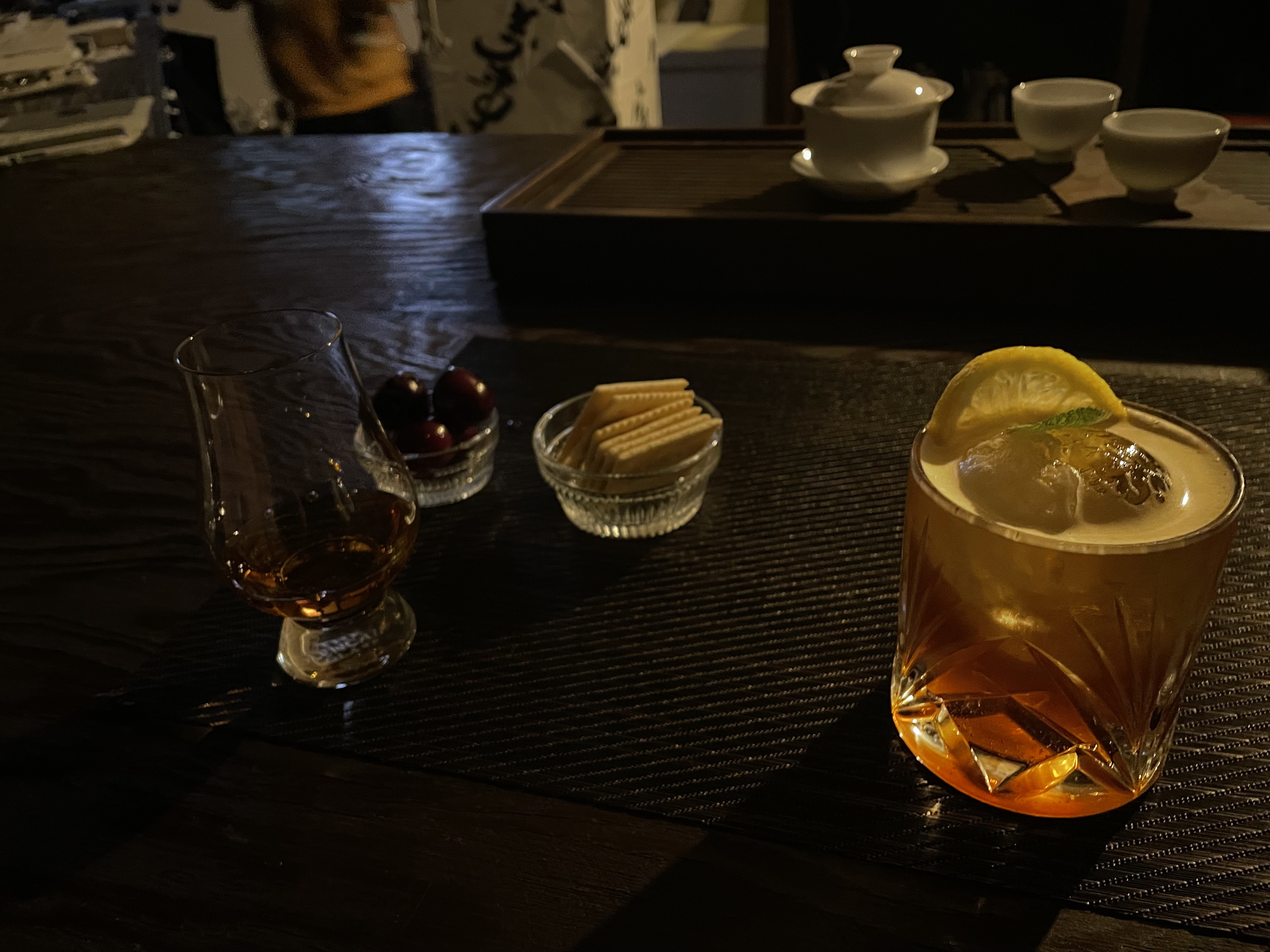 도시에서는 술로 도시의밤이란 칵테일을 주문했는데 도시의밤은 수정과가 들어간 칵테일로 도시의밤에서만 볼 수 있는 칵테일입니다. 맛은 처음에는 위스키향이 느껴지다가 끝 맛에 수정과의 향과 단맛이 느껴져서 오묘하면서 맛있었습니다. 찻집 겸 술집이다 보니 가게 컨셉과 어울리는 칵테일이었습니다. 찻집인데 칵테일을 주문해서 마셔봐서 차에 대한 후기는 못 들려드리는 게 아쉽지만 차를 우리는 퍼포먼스는 정말 인상 깊었어서 추천드리고 싶은 찻집이었습니다.