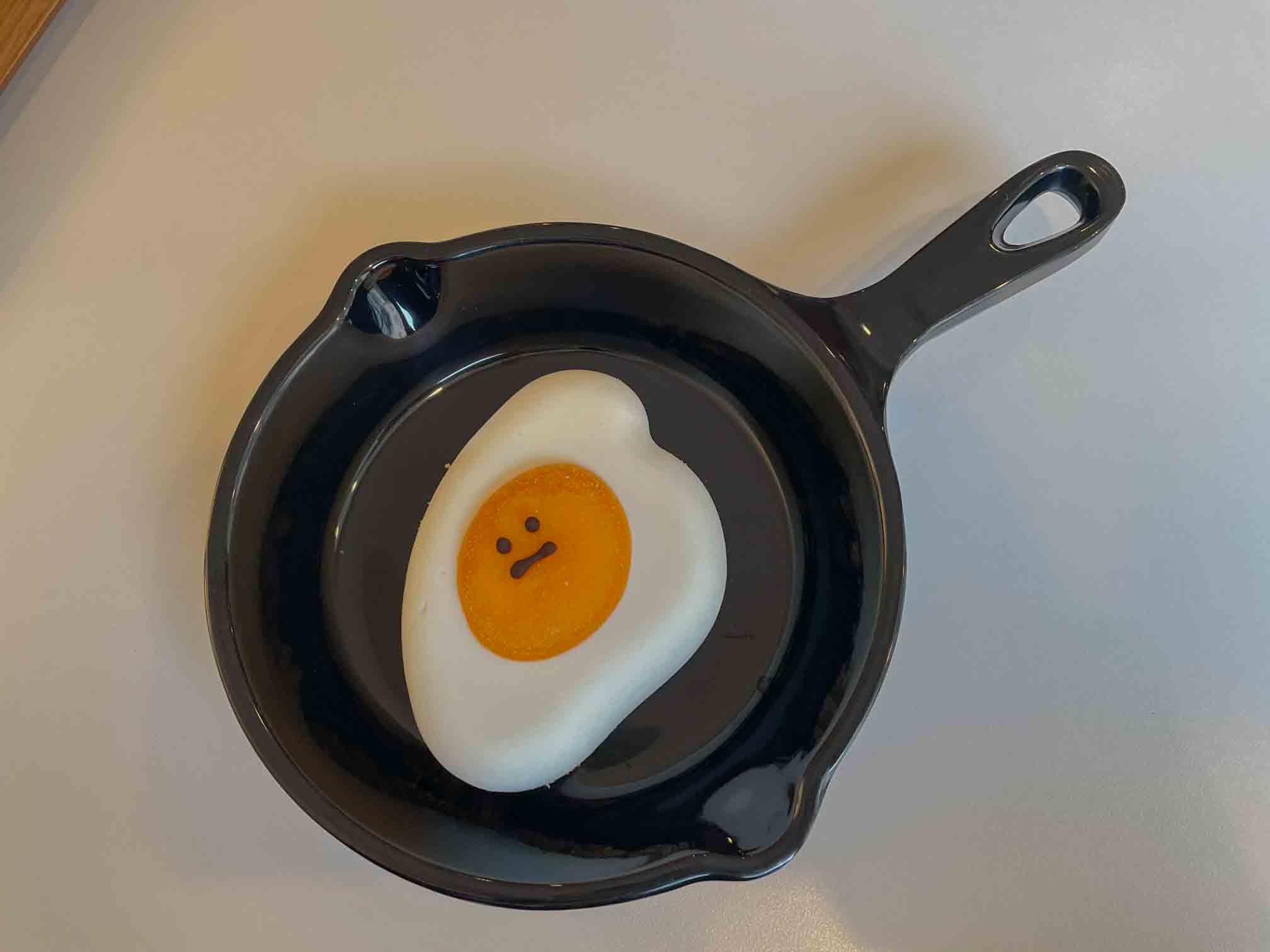 레어 치즈케이크는 계란 프라이 모양으로 계란 흰자부분이 치즈케이크 노란색 부분은 망고젤리로 되어 있습니다. 계란후라이 모양에 노란색 노른자에는 표정도 그려져 있어서 더욱 귀여운데 맛이 강한 편은 아니고 프레시 하게 즐길 수 있는 치즈케이크였습니다. 맛이 좀 약하실 때는 같이 제공되는 잼을 같이 뿌려 드시면 좀 더 달달하게 드실 수 있습니다.
