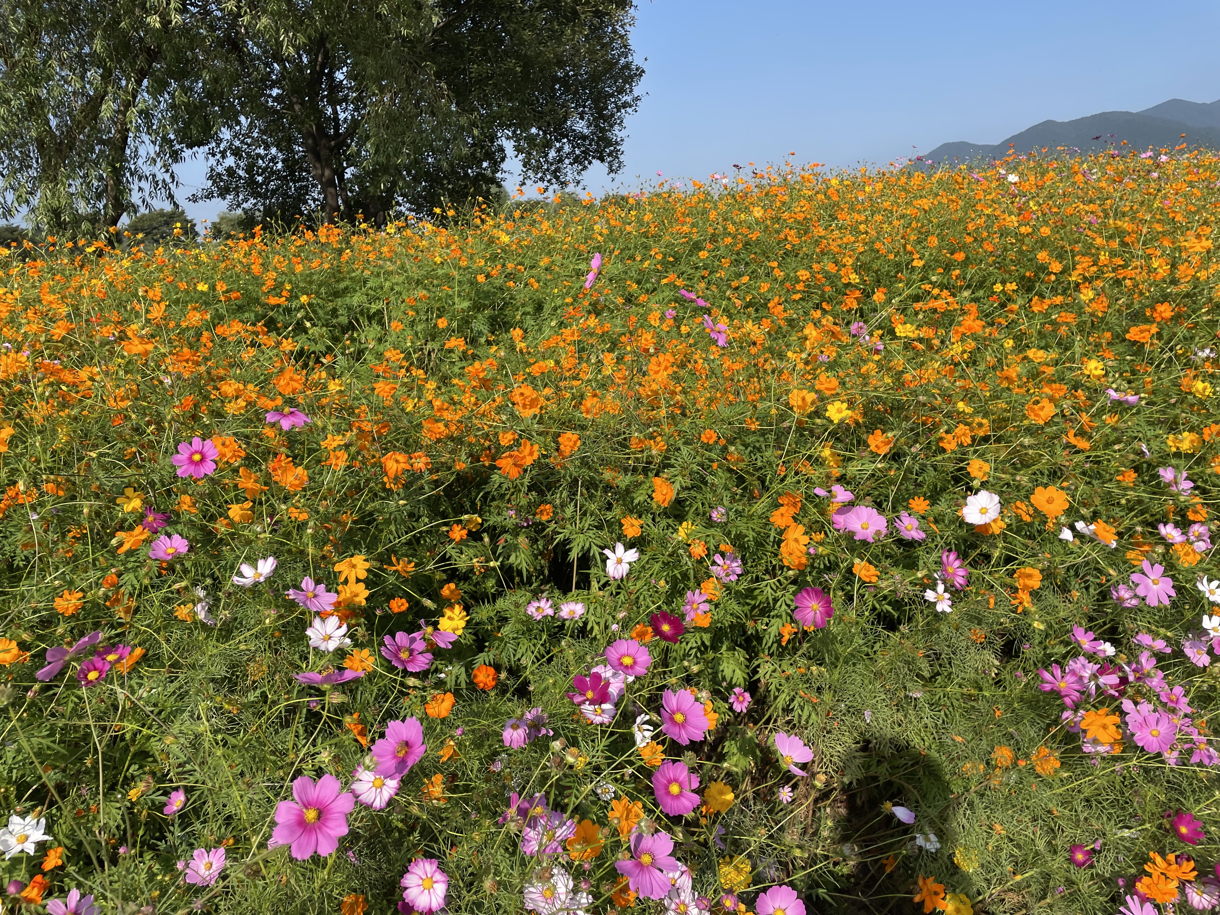 해바라기정원 건너편에는 장성옛정원이 있는데 옛날건물들과 함게 사이프러스가 같이 정원을 이루고 있습니다. 장성옛정원 주위에는 천일홍 꽃밭도 있는데 빨간색 천일홍과 보라색 천일홍이 반반 나뉘어서 서로 영역다툼을 하듯이 자기색깔을 환하게 뽐내며 펴있습니다. 그리고 장성옛정원에서 좀 더 걸어가면 코스모스밭도 코스모스정원 못지않게 꾸려져 있는데 대신 코스모스정원은 훨씬 가꿔진 느낌이긴 하지만 장성옛정원 인근에 있는 코스모스밭도 굉장히 넓고 예뻐서 만약에 핑크뮬리를 굳이 안 봐도 된다면 코스모스정원을 포기하고 조금만 걸어 다니면서 꽃구경을 하셔도 좋을 것 같습니다.