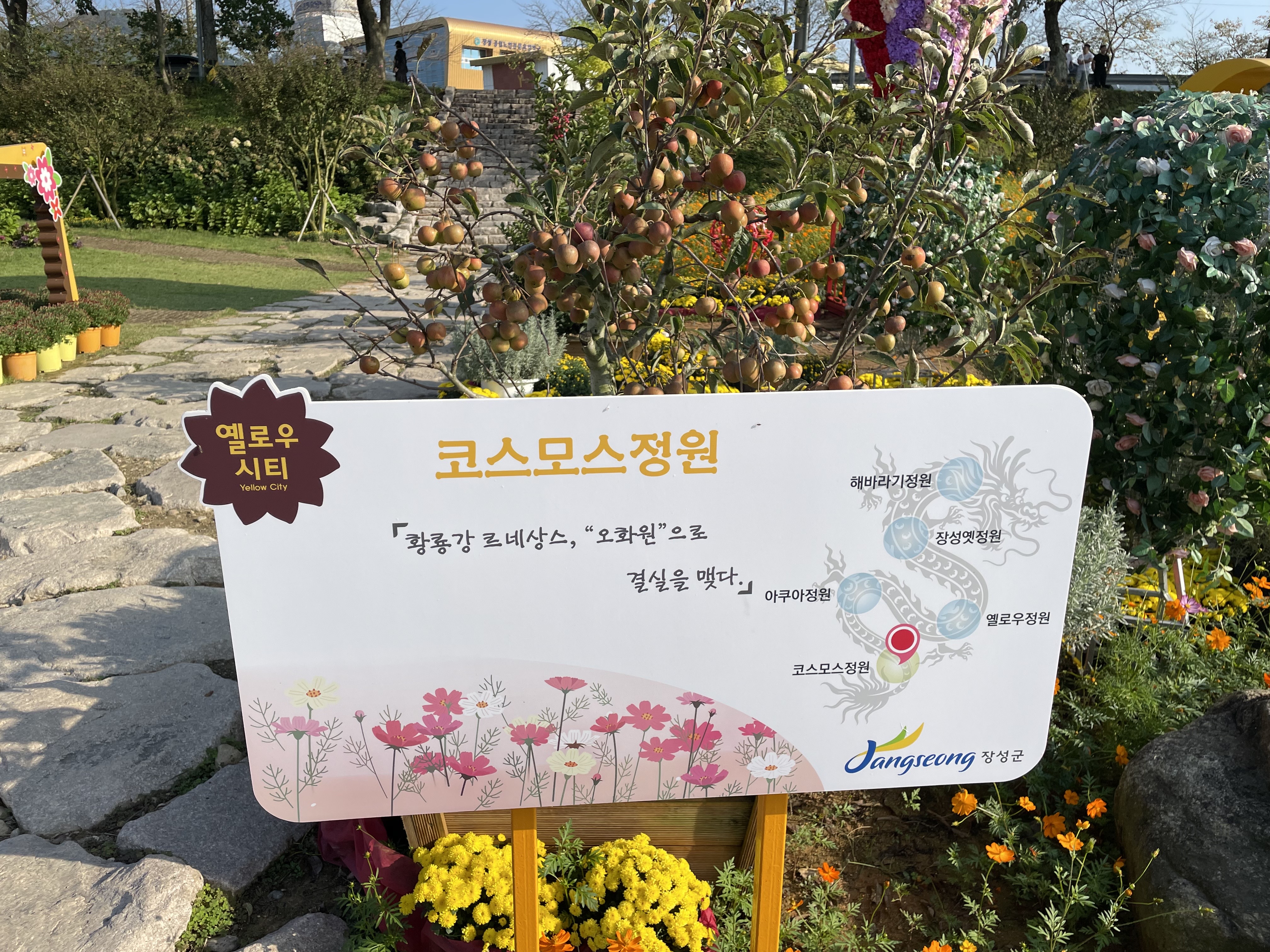 꽃은 총 다섯 개의 정원으로 각각의 테마에 맞춰서 가꿔져 있는데 코스모스정원, 아쿠아정원, 옐로우정원, 장성옛정원, 해바라기정원 다섯 곳으로 나뉘어 있습니다.
