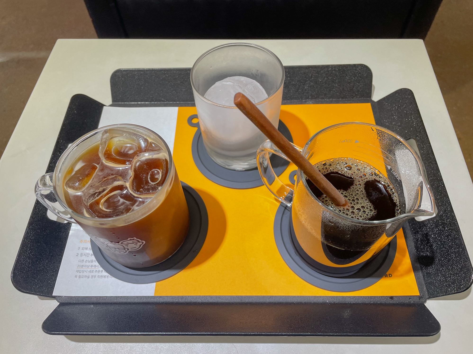 아메리카노는 블랙으로 원두를 선택해서 아이스로 내려서 마셨는데 노트에는 다크 초콜릿, 녹차, 견과류라고 적혀 있었습니다. 직접 마셔봤을 때는 스모키 한 느낌과 끝 맛의 쌉싸름함이 매력적인 원두로 일반적인 아메리카노를 좋아하는 분들이 무난하게 좋아하지 않을까 싶습니다.