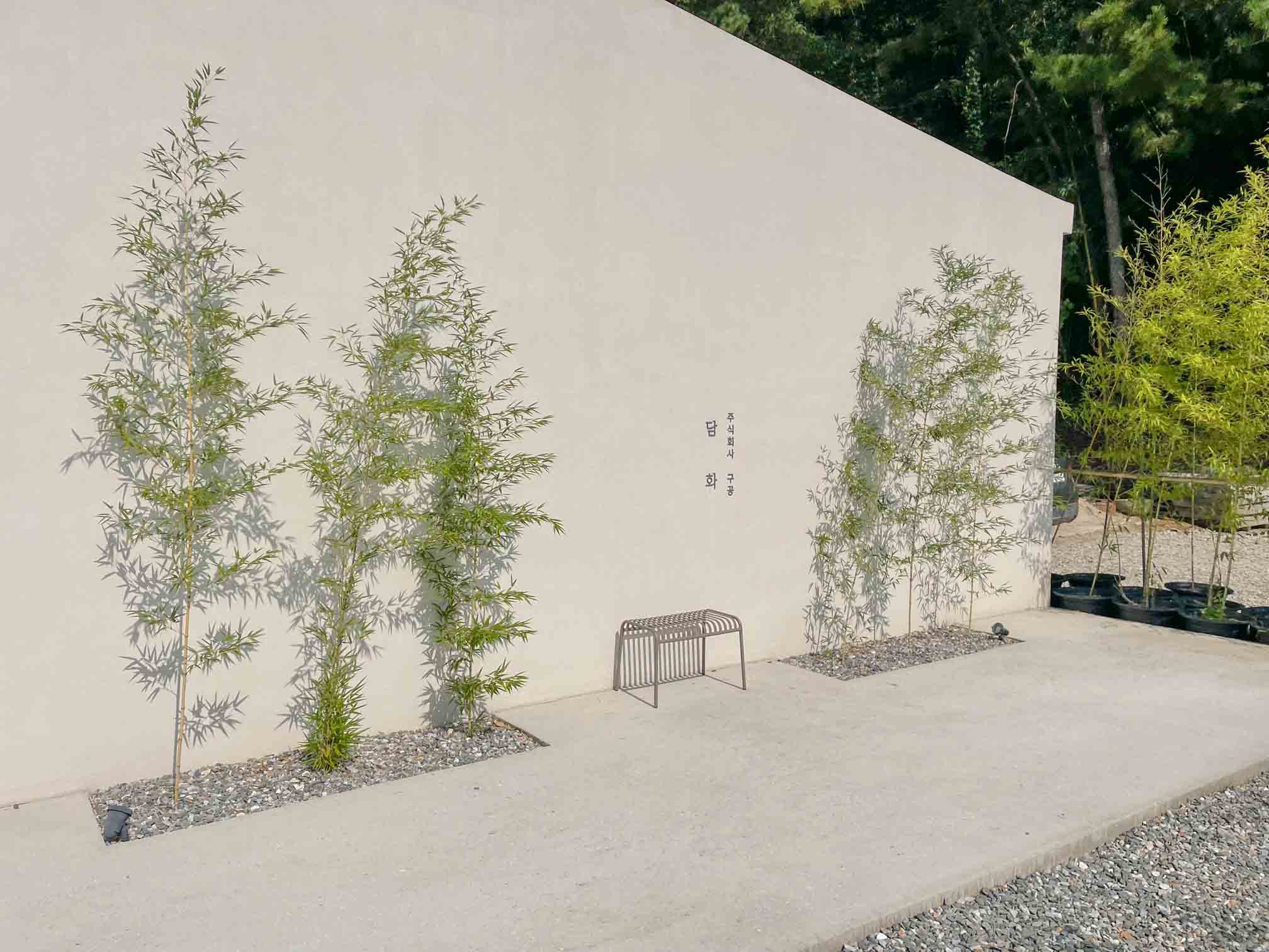 담화는 건물과 야외 공간이 흰색 벽과 바닥으로 꾸며져 있는데 중간중간 공간에 자갈과 푸른색 풀과 나무로 꾸며져 있는 게 수수하면서 예뻤습니다. 그리고 센스 있게 벽과 나무 등으로 포토존 공간도 만들어놔서 사진을 찍으러도 많이들 오는 카페입니다.