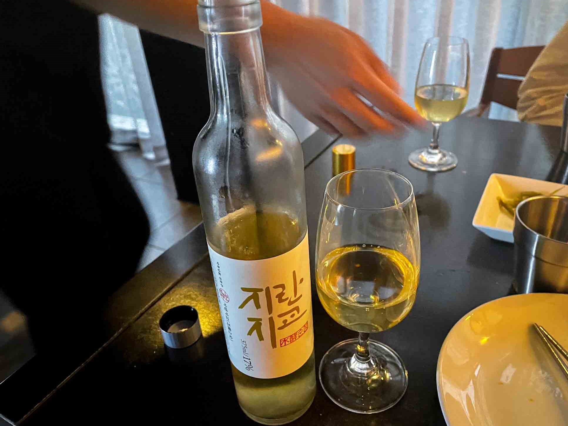 두 번째로 소개해드릴 술은 같은 지란지교 시리즈로 이번에는 탁주가 아닌 청주로 주문을 해봤습니다. 술의 색깔은 투명한 노란빛이 도는 청주였습니다. 같은 지란지교 시리즈이지만 색과 향은 전혀 다른 모습이라 또 어떤 매력일지 기대가 되는 술이었습니다.