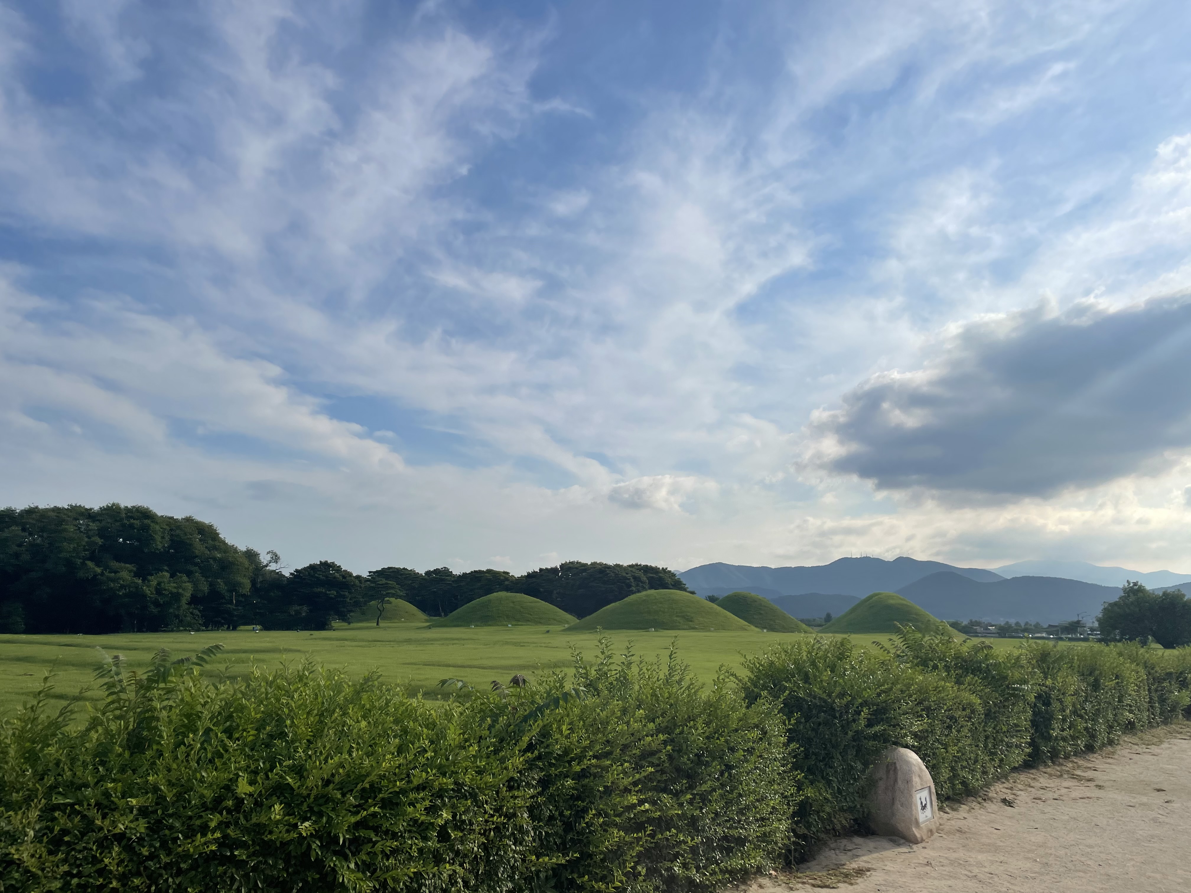 첨성대는 흔히 들 알고 있듯이 삼국시대 신라 시기의 천문관측소로 이용됐다는 공간인데 항상 보 다모면 저렇게 낮은 곳에서 관측이 제대로 됐을지가 의문이 들긴 합니다. 첨성대는 주위로는 조명이 깔려있어서 야간에는 야경 맛집으로 변해서 낮보다 야간에 사람들이 많이 찾는 장소이지만 낮에도 방문하면 넓게 펼쳐진 장소와 왕릉 들과 함께 하늘사진이 굉장히 예쁘게 나옵니다.