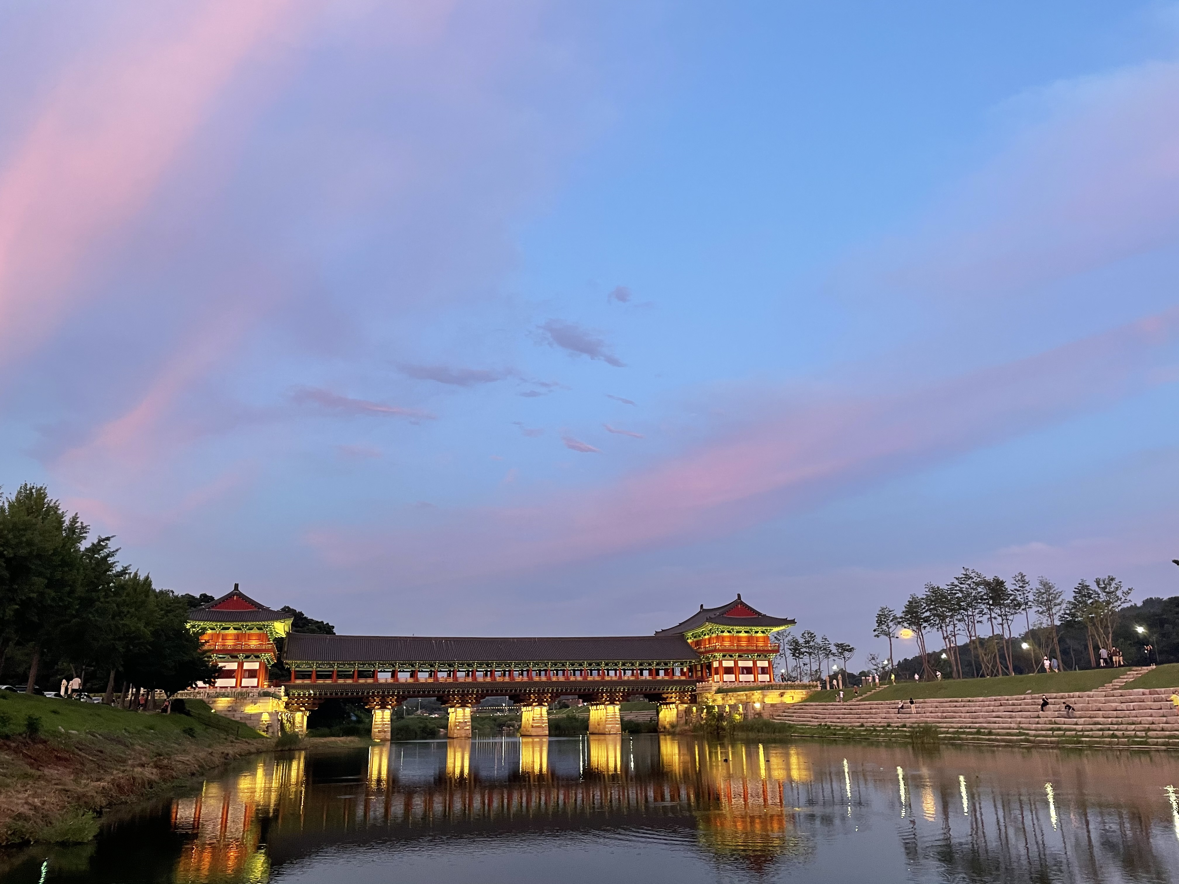 - 강에 비치는 노을과 야경이 예쁜 경주 월정교