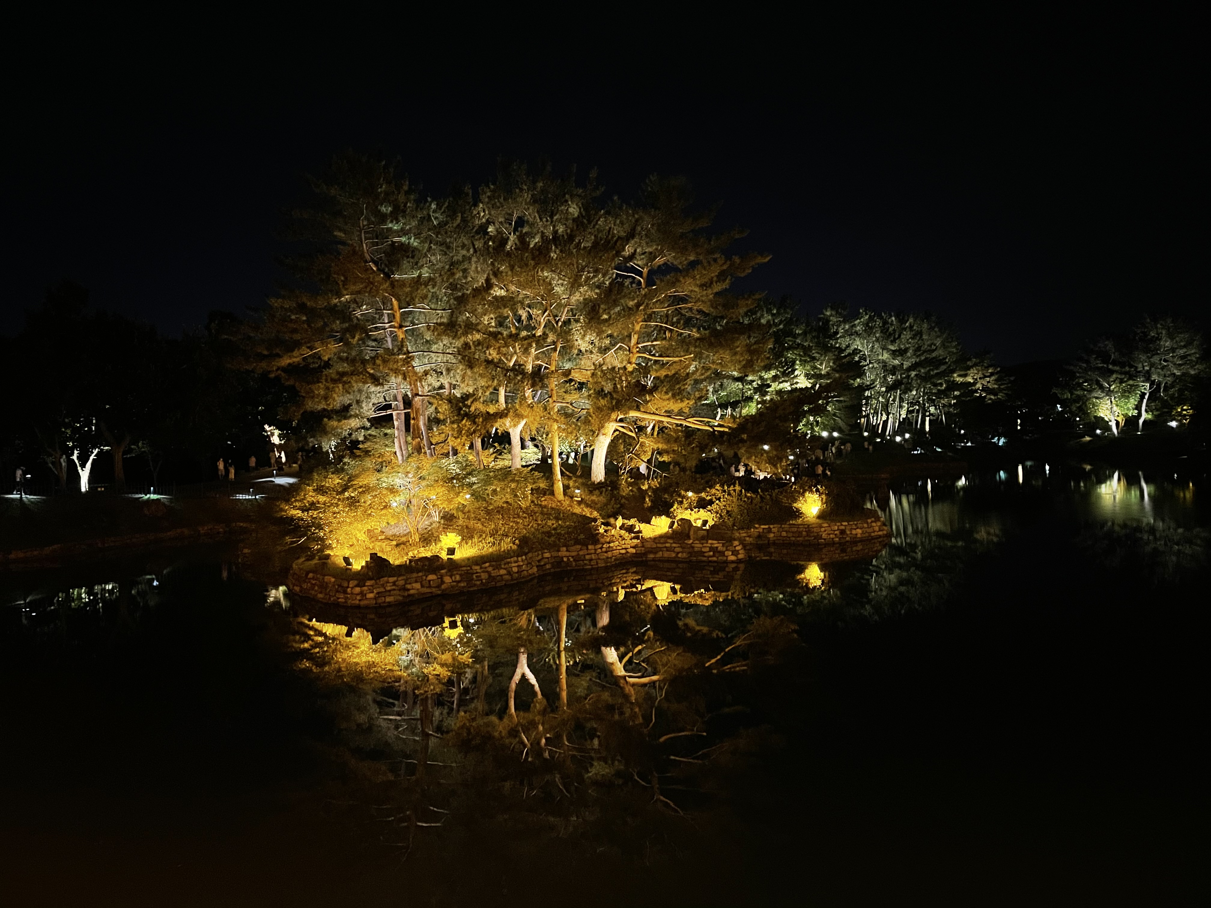 동궁과 월지를 입장하실 때는 입장료가 부과되는데 딱히 부담스러운 가격은 아니었던 것 같습니다. 대신 주차공간이 넓고 주차는 무료로 하실 수 있으니 주차비까지 포함하면 입장료가 아깝지 않을 것 같습니다. 내부는 꽤 넓은데 호수나 연못이 벽이랑 부딪히는 하단에 조명이 설치돼 있어서 굉장히 예쁘게 보이고 어두운 호수에 건물과 나무들이 또렷하게 빛나는 모습이 보고 왜 야경이 예쁜 곳으로 유명한 지 알 것 같았습니다.
