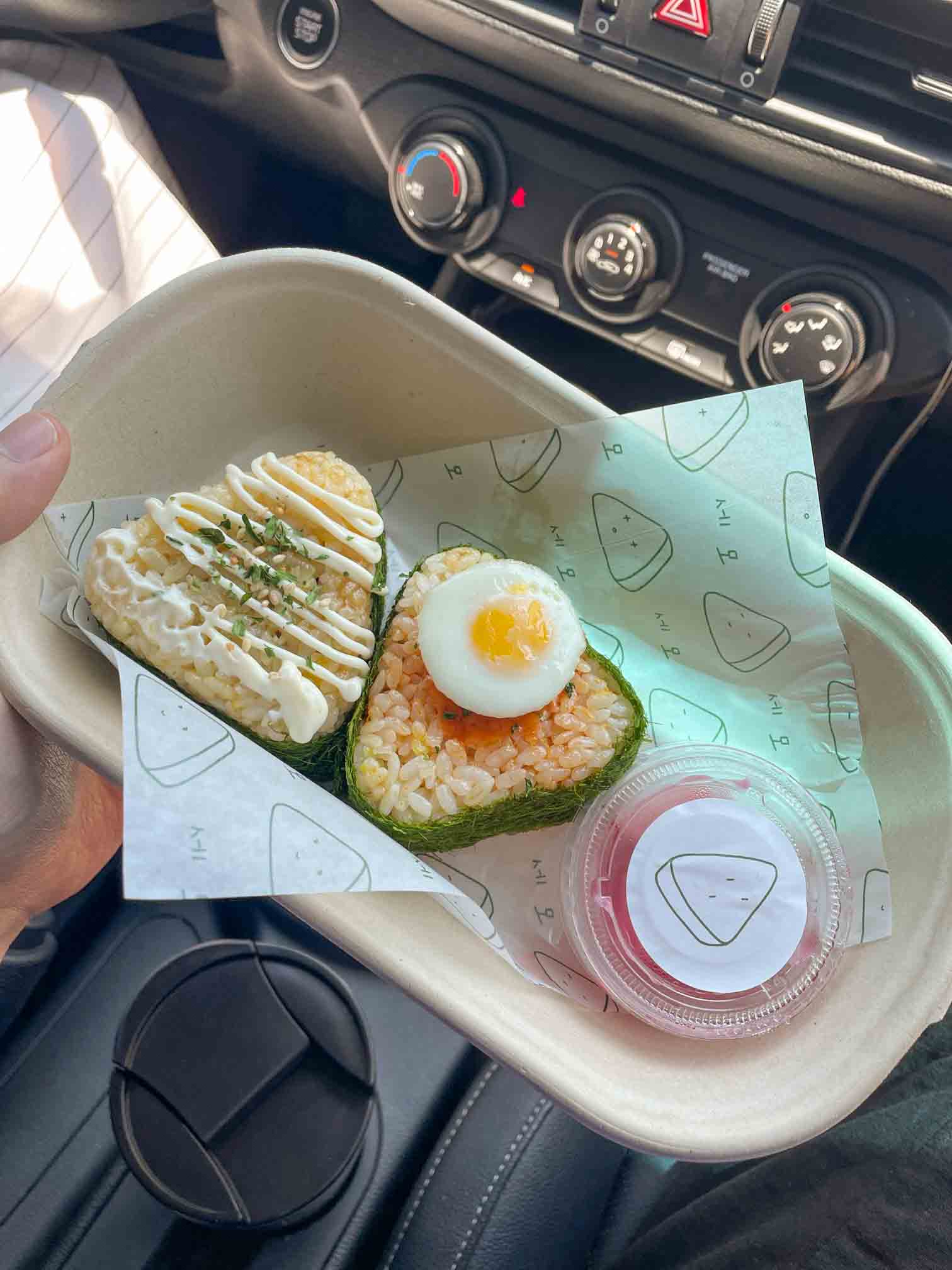 세모주먹밥은 당근주스도 같이 판매하고 있는데 제가 방문했을 때는 이미 당근주스는 다 팔려서 결국 주먹밥만 사서 점심을 먹기 전 간식으로 여자친구와 한개씩 나눠먹었습니다.