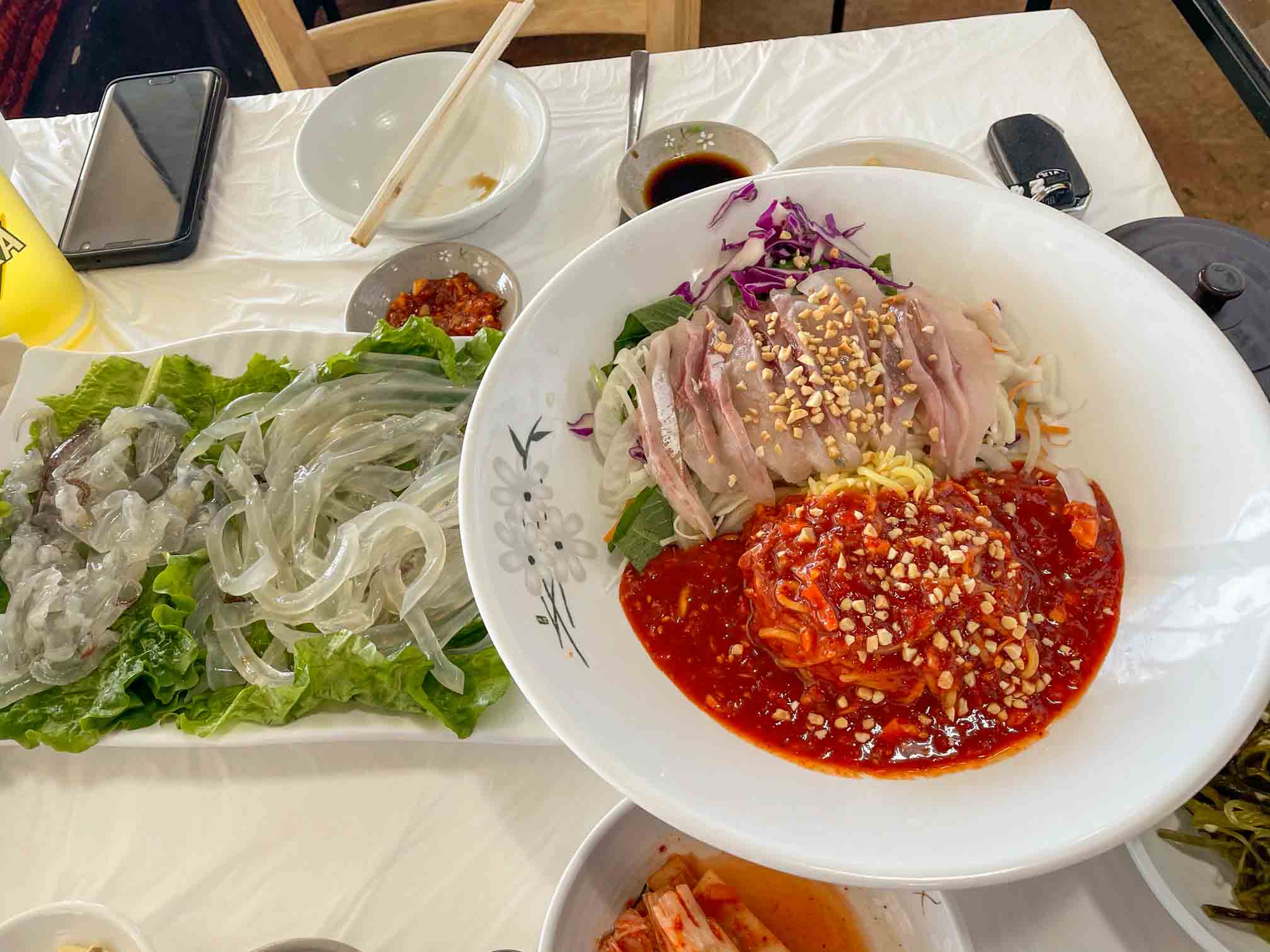 곰막식당은 회국수, 성게국수, 한치회로 유명한 횟집인데 전복, 뿔소라, 활어, 고등어 회 등 다양한 회도 함게 판매하고 있습니다. 저희의 곰막식당에서의 목적은 한치회인데 방문한 김에 회국수도 함께 주문했습니다.
