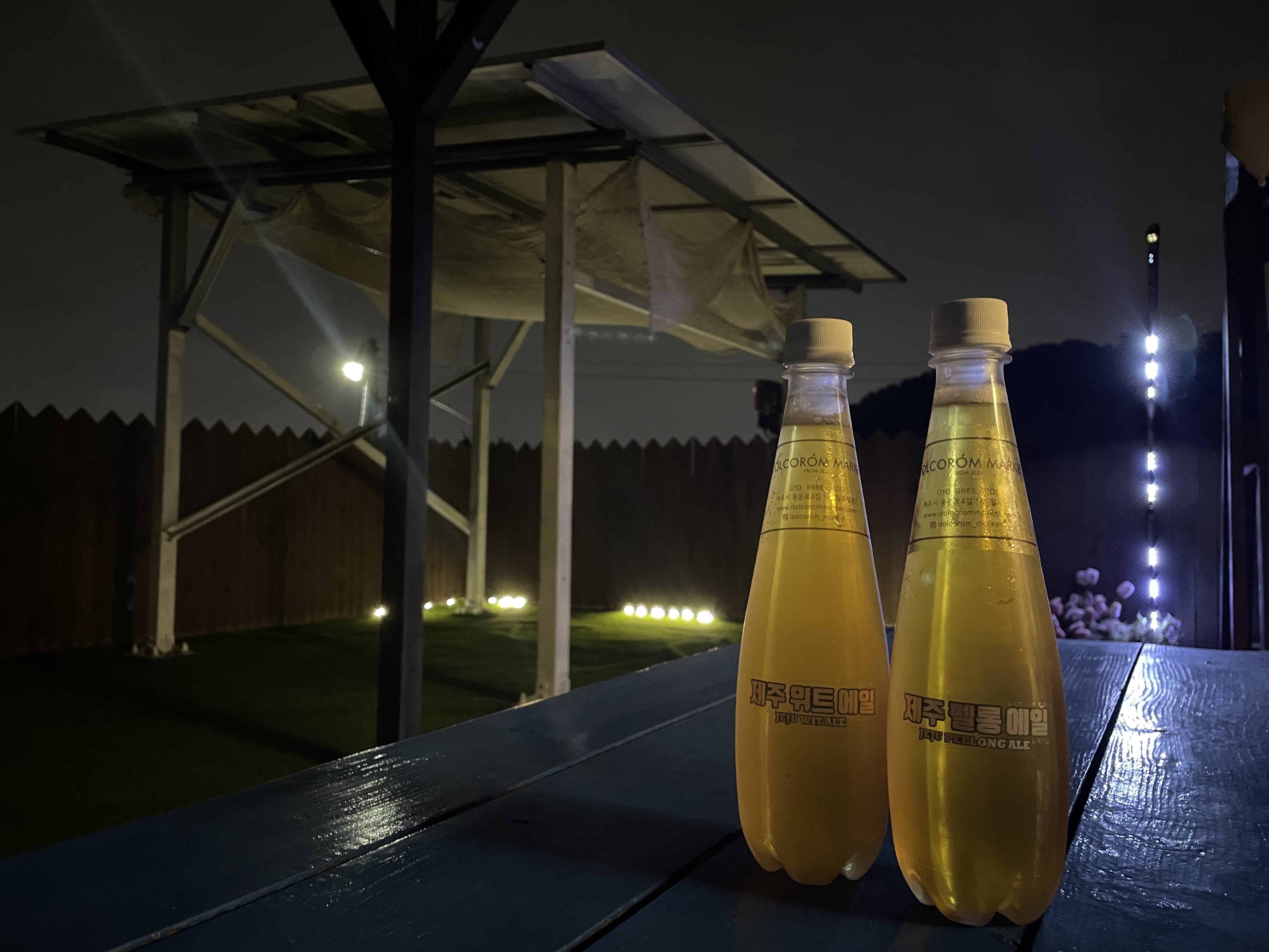제주 위트 에일과 제주 펠롱 에일은 제주 동문시장에서 구매해 왔습니다. 아마 편의점에서 캔으로 판매하는 건 보신분들은 있을 수 있지만 투명한 플라스틱 병에 판매하는 건 생소하실 거라고 생각 됩니다.