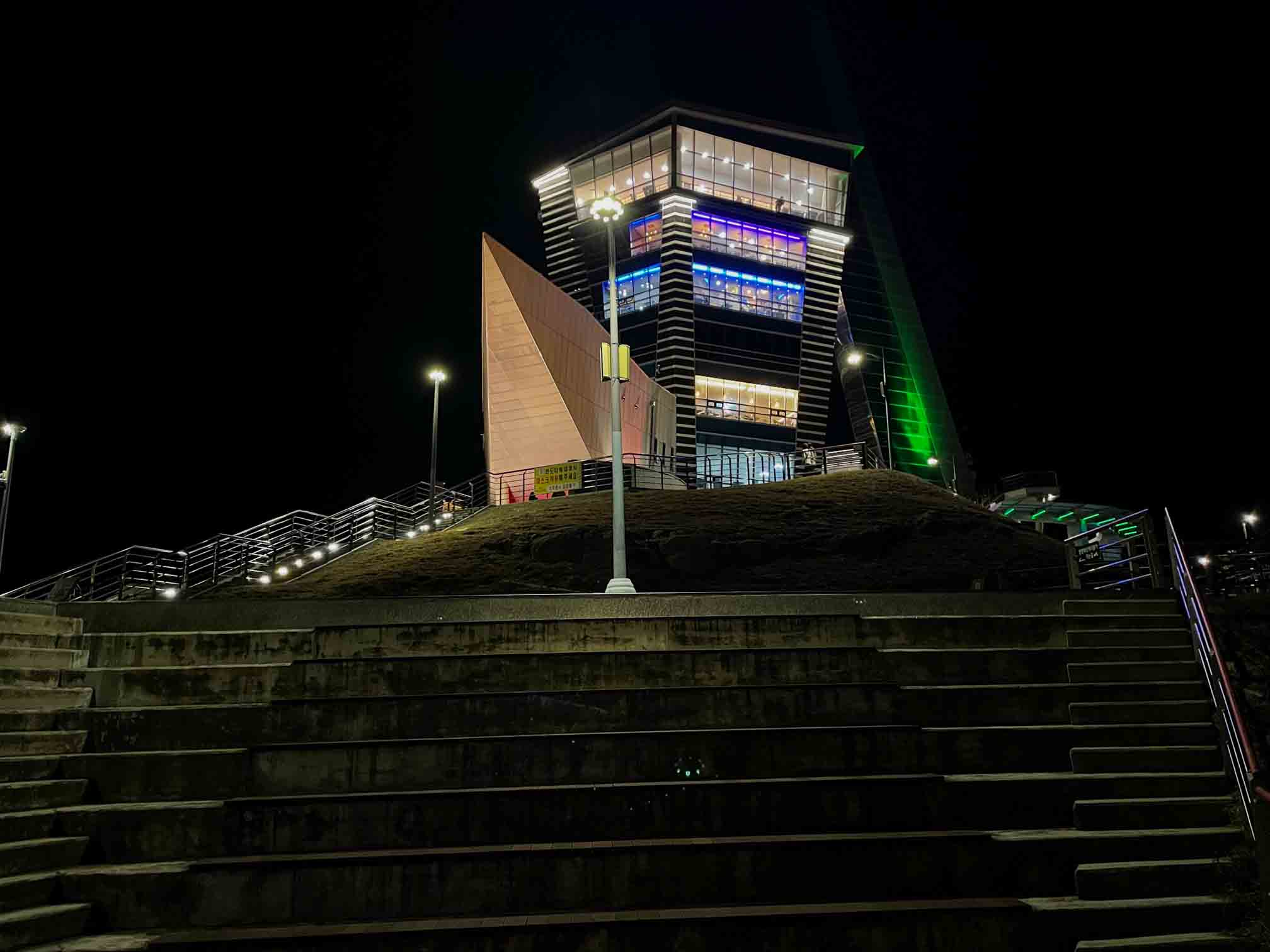 진도 여행 코스 마지막으로 소개해드릴 곳은 진도타워입니다. 진도타워는 진도 케이블카를 탈 수도 있고 진도 레스토랑도 있지만 야간에 방문하시면 높은 곳에서 진도대교의 야경을 구경할 수 있습니다. 진도대교 야경을 보는 건 진도타워 야외 공간에서도 충분히 예쁘게 볼 수 있기 때문에 굳이 진도타워를 들어가지 않아도 무료로 구경할 수 있어서 좋았습니다. 날씨가 쌀쌀하고 늦은 시간임에도 생각보다 많은 분들이 진도타워에서 진도대교 야경을 보려고 방문했는데 진도 야경이 예쁘단 소리를 많이 못 들어봤는데 생각보다 진도대교 야경도 예뻐서 전남 야경 명소를 찾으신다면 추천드리고 싶습니다.